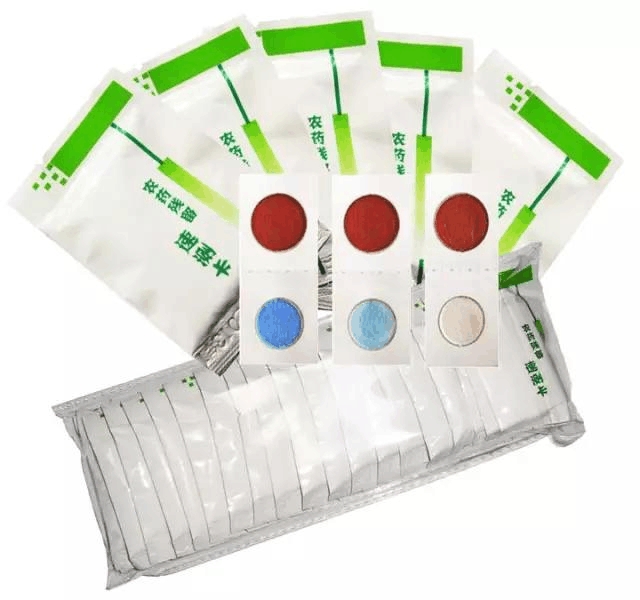 陽性:白色藥片不變色或呈淺藍(lán)色(深色表示殘留較高,淺色表示殘留較低)。陽性樣品建議進(jìn)一步采用法定方法確認(rèn)農(nóng)藥種類與準(zhǔn)確殘留量。